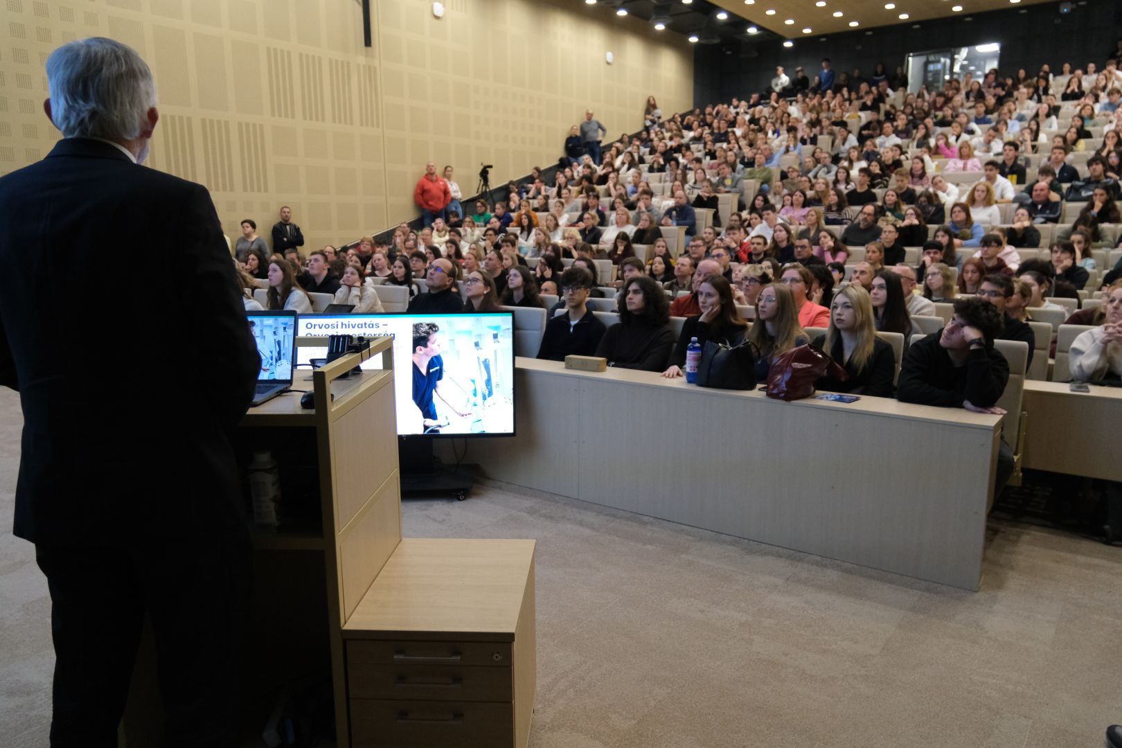 A Nyílt Nap talán egyik legjobban várt része a szakokat bemutató előadássorozat volt. Az első előadásban Dr. Nagy Ákos, a fogorvostudományi szak szakvezetője ismertette a legfontosabb tudnivalókat a fogászati képzésről. A második előadást Dr. Kvell Krisztián és Prof. Dr. Balogh Péter, a biotechnológia BSc és MSc szakok szakvezetői tartották, akik ismertették a követelményeket és a biotechnológia tudományában rejlő izgalmakat. Ezek után Dr. Fittler András következett, a Gyógyszerésztudományi Kar dékánja, aki a gyógyszerésztudományi képzés iránt érdeklődő diákoknak ismertette részletesen a szak tudnivalóit, majd Dr. Duga Zsófia a Marketing és Kommunikációs Osztály vezetője tartotta meg előadását a 2026-os felvételi követelményekről. Az előadássorozatot Dr. Czopf László, oktatási dékánhelyettes és szakvezető zárta az általános orvosi szakról szóló előadásával.